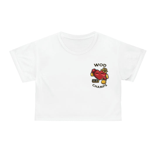 WOD CHAMPS (Small Logo - White) - Crop Tee (AOP)