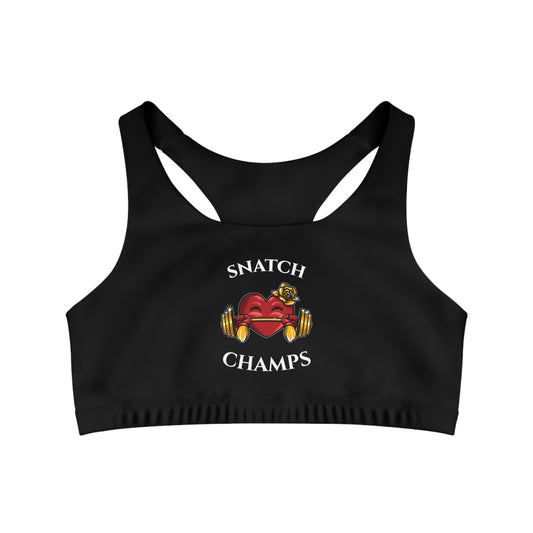 SNATCH CHAMPS - Center Logo - (Black) - Seamless Sports Bra (AOP)