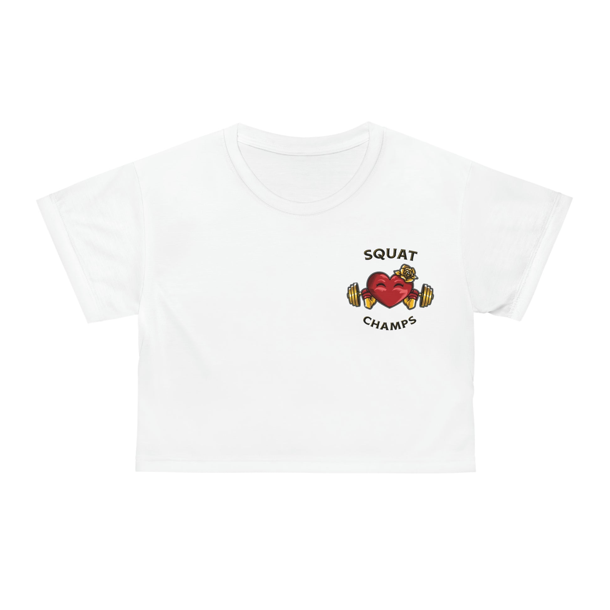SQUAT CHAMPS (Small Logo - White) - Crop Tee (AOP)